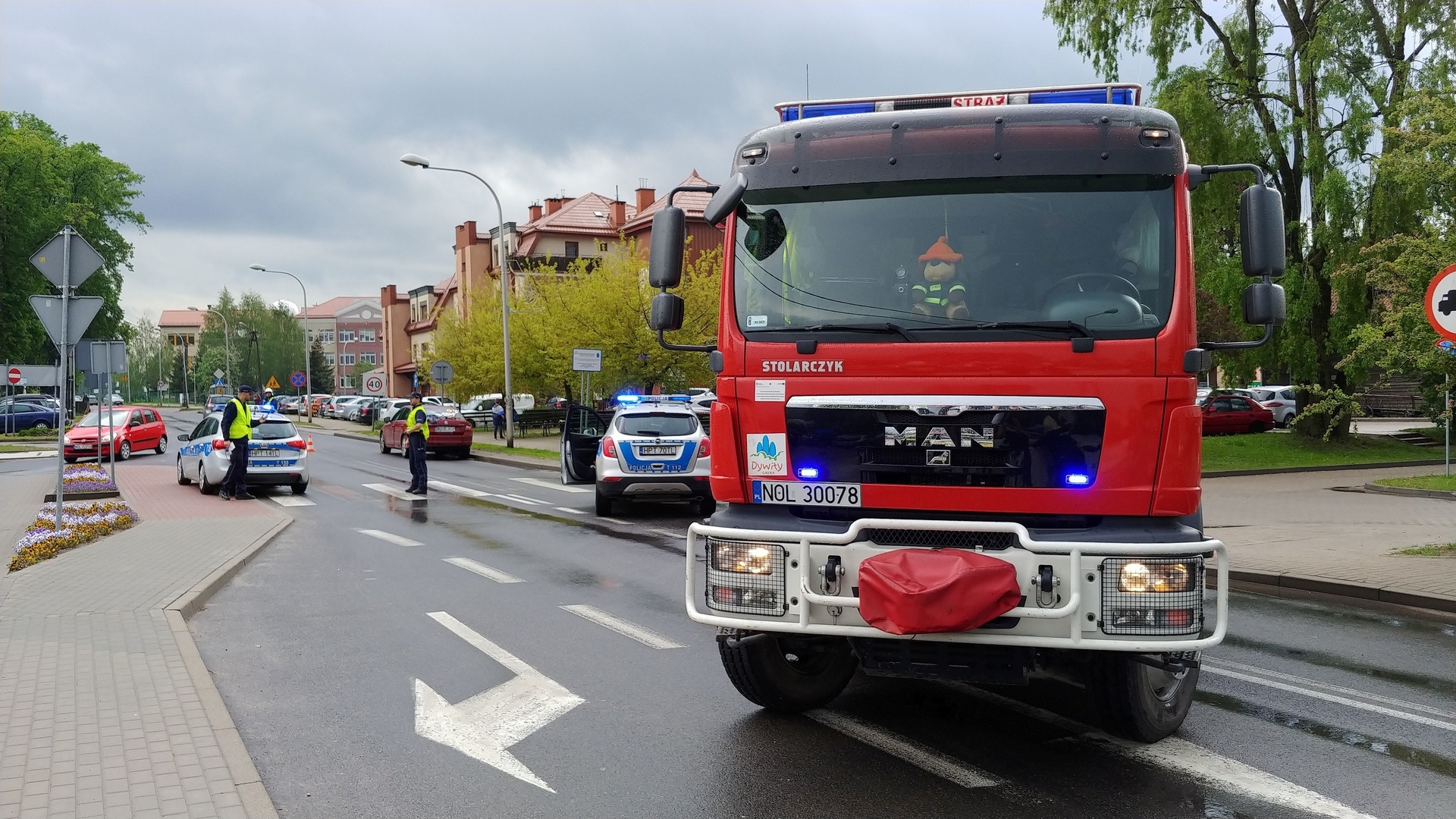 Piątek, 17 maja 2019 r. – o godz. 16:01 zostaliśmy zadysponowani przez Dyżurnego SKKM PSP w Olsztynie do wypadku na ul. Spółdzielczej w Dywitach – potrącenie 2 dziewczynek na przejściu dla pieszych. Wyjechaliśmy zastępem 309-68 w pełnej obsadzie. W działaniach uczestniczyły także zastępy 302-21 i 302-25 z JRG-2 w Olsztynie, Policja, oraz 2 Zespoły Ratownictwa Medycznego WSPR w Olsztynie. Do jednostki wróciliśmy ok. godz. 18:05.