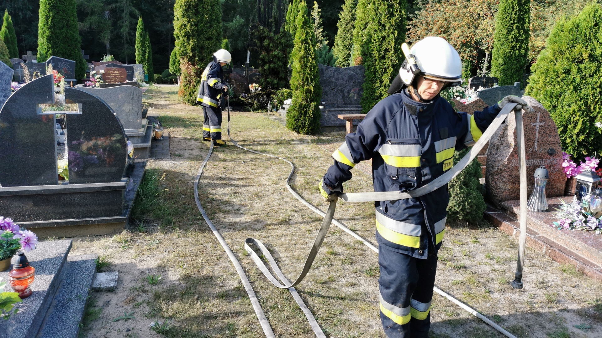 Wtorek, 20 sierpnia 2019 r. – o godz. 17:04, zostaliśmy zadysponowani przez Dyżurnego SKKM PSP w Olsztynie do pożaru tui na Cmentarzu Komunalnym w Dywitach, do którego doszło wskutek pęknięcia palącego się znicza stojącego blisko krzaków. Wyjechaliśmy zastępem 309-65 w pełnej obsadzie. Do jednostki wróciliśmy ok. godz. 17:40.