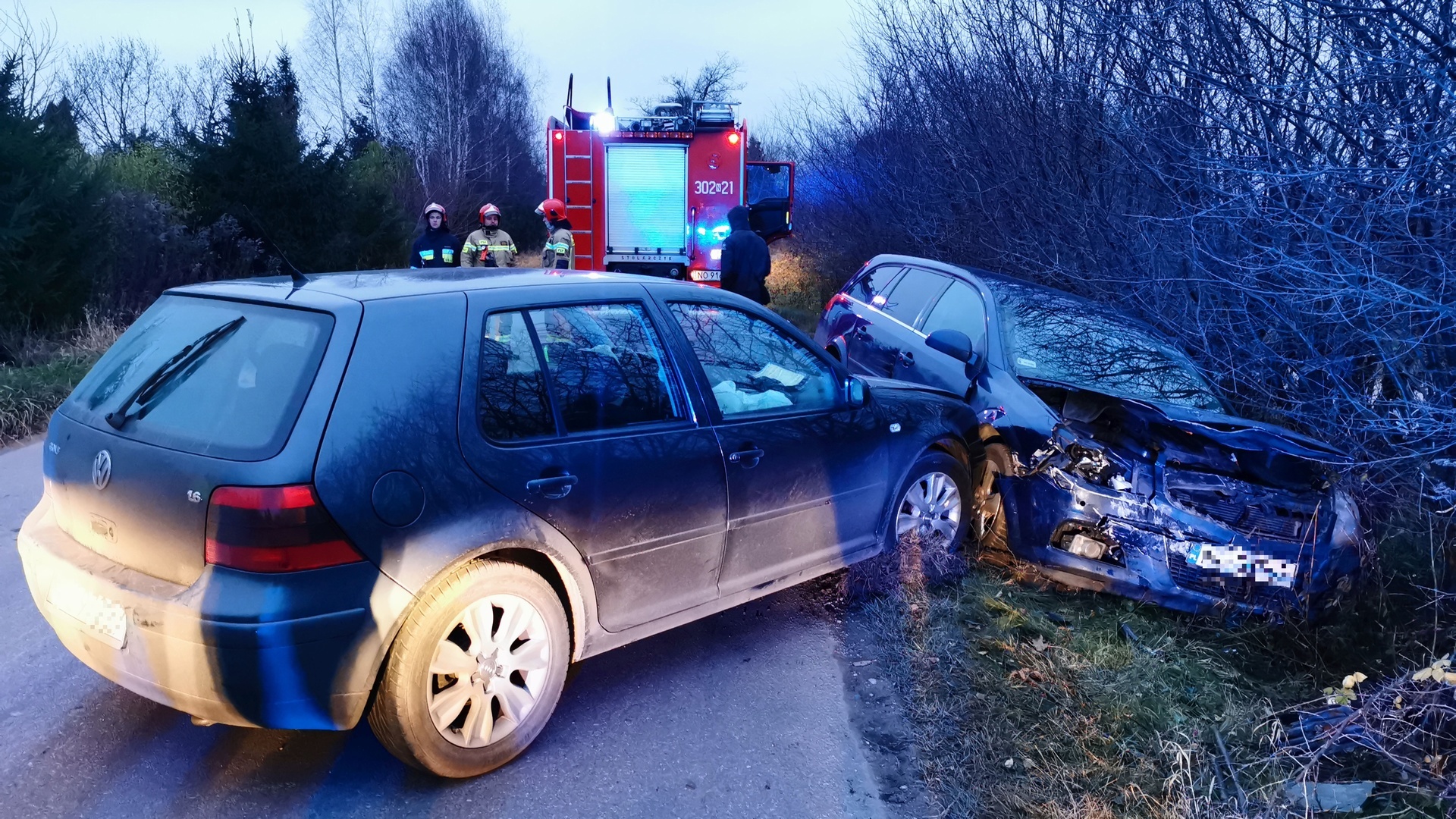 Piątek, 22 listopada 2019 r. – o godz. 15:20 zostaliśmy zadysponowani przez Dyżurnego SKKM PSP w Olsztynie do czołowego zderzenia dwóch pojazdów osobowych w miejscowości Wadąg. Wyjechaliśmy zastępem 309-68 w pełnej obsadzie. Jedna osoba poszkodowana w tym zdarzeniu została odwieziona do szpitala. W działaniach brał udział także zastęp 302-21 zJRG-2, Policja oraz Zespół Ratownictwa Medycznego z WSPR w Olsztynie. Do jednostki wróciliśmy ok. godz. 16:10.