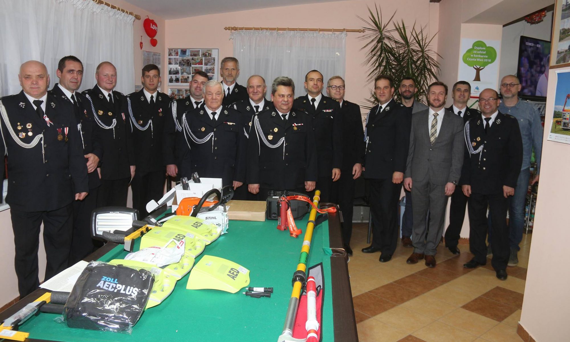 W czwartek 15 listopada 2018 roku w remizie OSP Kieźliny odbyło się oficjalne przekazanie nowego sprzętu ratowniczego, którego zakup został dofinansowany w 99% przez Ministerstwo Sprawiedliwości z Funduszu Pomocy Pokrzywdzonym oraz Pomocy Postpenitencjarnej – Funduszu Sprawiedliwości. Sprzęt trafił nie tylko do nas, ale także do OSP Tuławki, Brąswałd i Spręcowo.