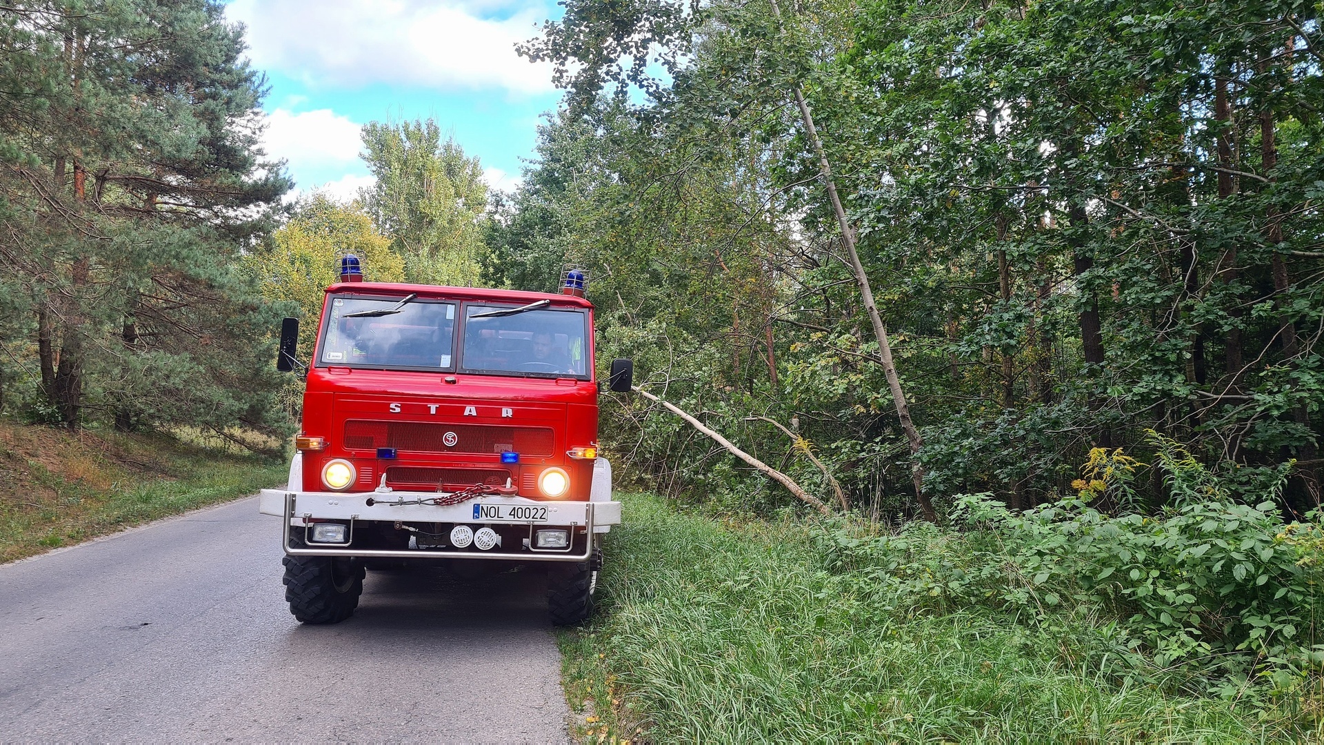 Czwartek, 17 września 2020 r. – o godz. 15:42 zostaliśmy zadysponowani przez Dyżurnego SKKM PSP w Olsztynie do usunięcia drzewa powalonego na jezdnię w Kieźlinach. Wyjechaliśmy zastępem 309-65. Do jednostki wróciliśmy ok. godz. 16.